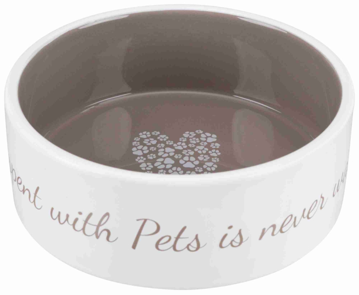 Acest castron ceramic pentru caini este perfect pentru a asigura hrana sau apa proaspata si curata pentru prietenul dumneavoastra patruped. Culoare: crem/taupe.Capacitate: 1.4 lDiametru: 20 cm